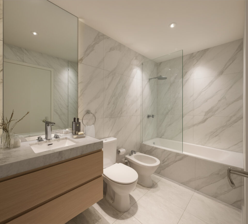 Unidades modernas y funcionales, equipadas con instalaciones de última generación: griferías, sanitarios, hornos, pisos de porcelanato y ventanales de alta calidad.
