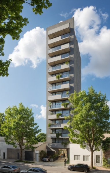 Un edificio de estilo minimalista y contemporáneo, con departamentos de 57 m² pensados para el confort diario. 💫